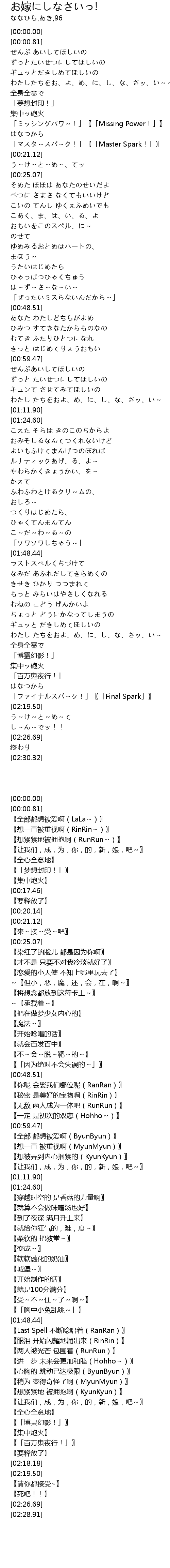 | [00:20.14] | 「マスタ~スパ~ク!」〖「Master Spark!」〗 |