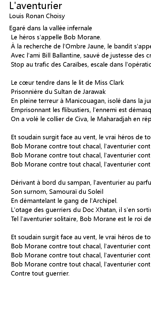 | Le he ros s' appelle Bob Morane. | |