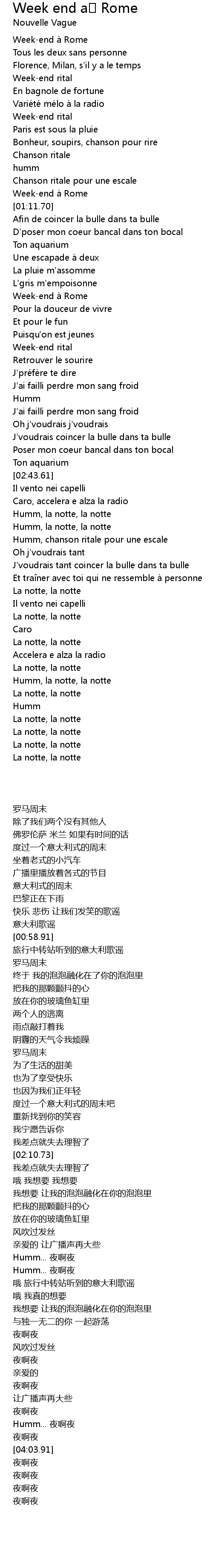 | [00:16.73] | Weekend à Rome |