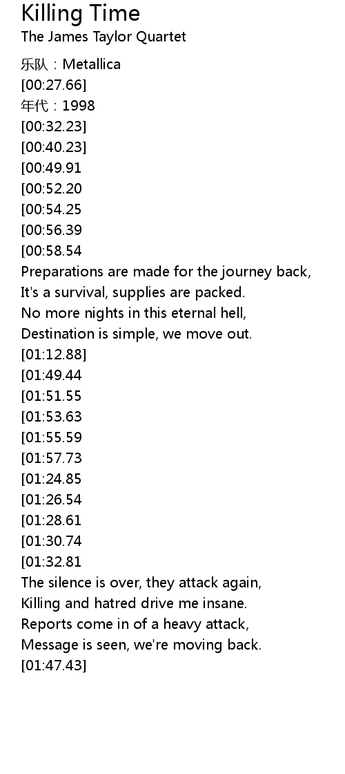 | [02:46.31][01:49.44][01:14.74] | Killing time - You left from the line |