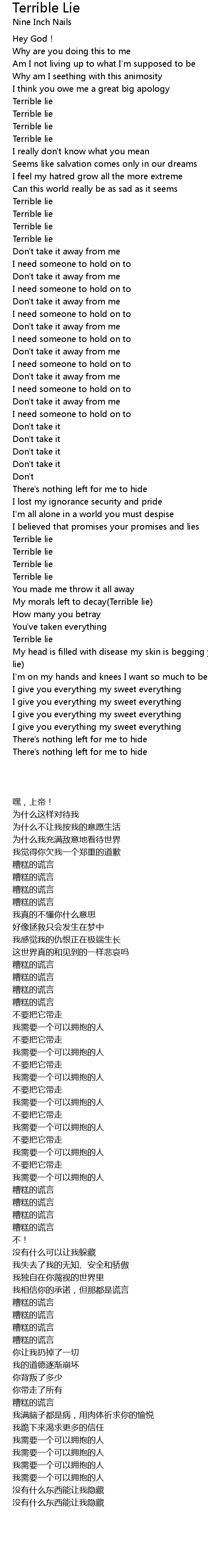 | 歌曲 | Terrible Lie |