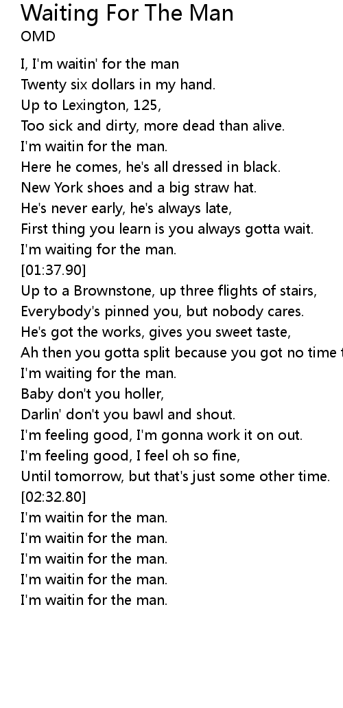 | [02:34.32] | I'm waitin for the man. |