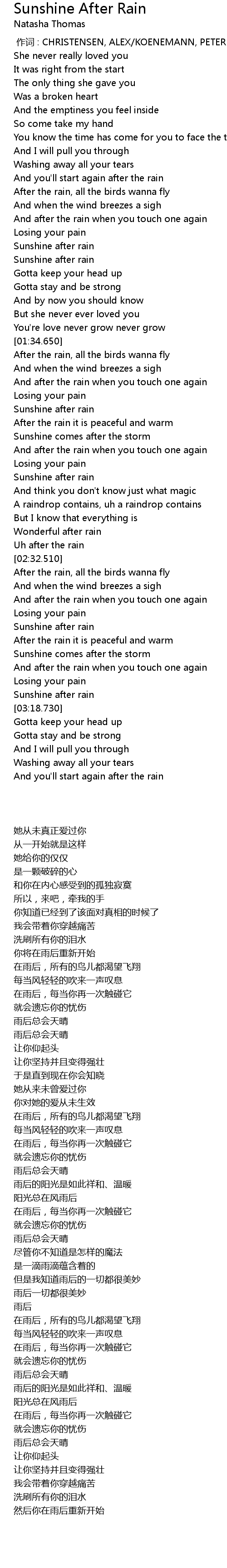 | [03:14.350] | 雨后总会天晴 |