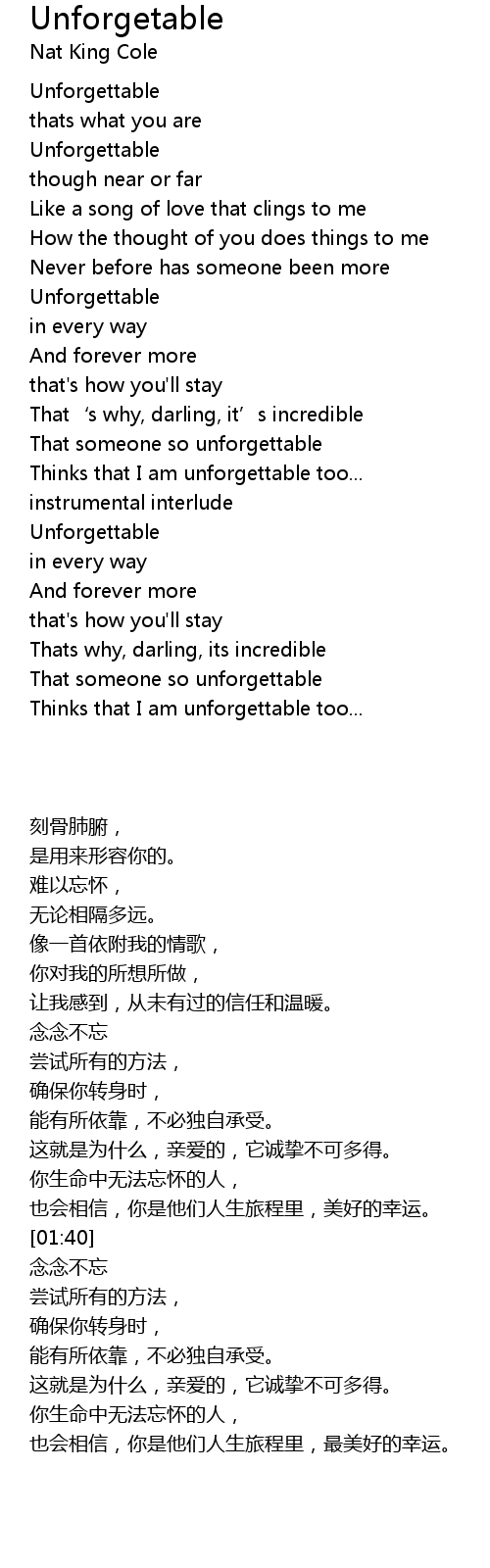 | 歌曲 | Unforgetable |