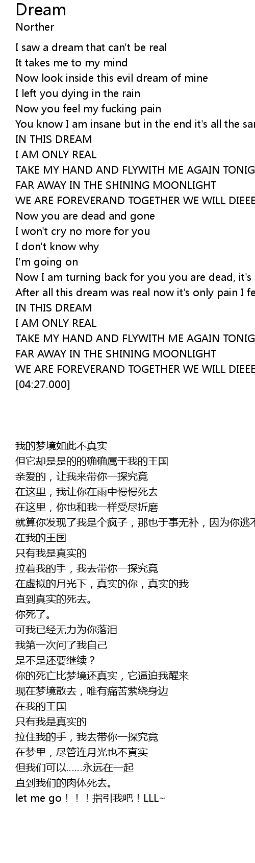 | [02:14.000] | After all this dream was real now it's only pain I feel |