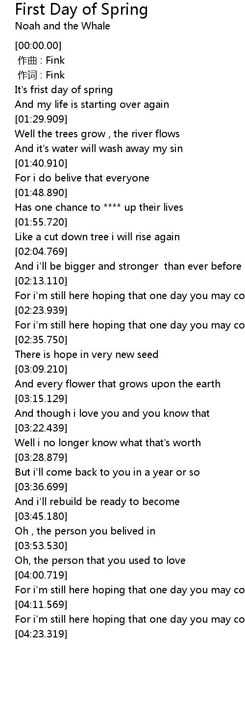 | [01:16.700] | It' s frist day of spring |