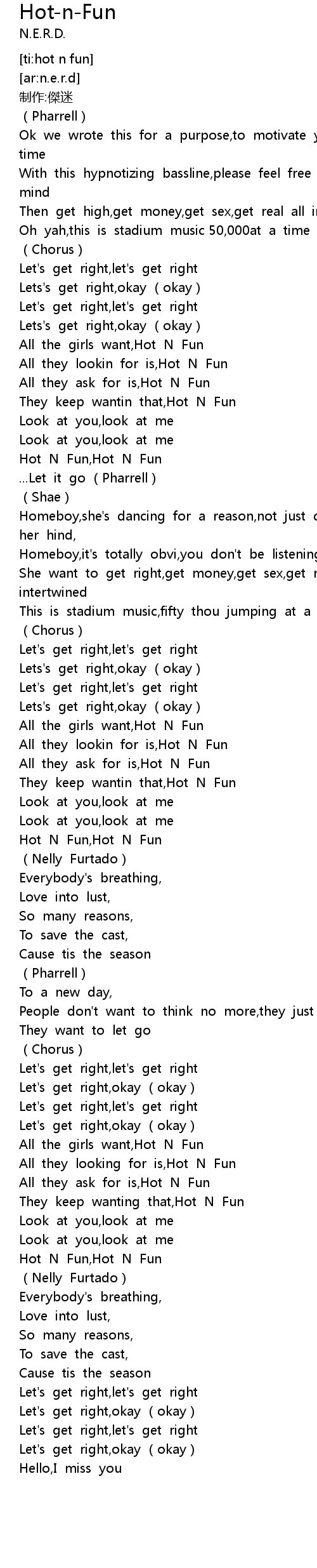 | [02:16.171] | Hot N Fun,Hot N Fun |