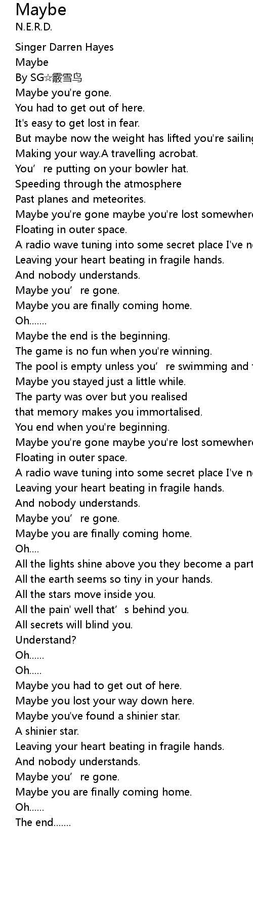 | [00:38.95] | Maybe you're gone maybe you're lost somewhere. |