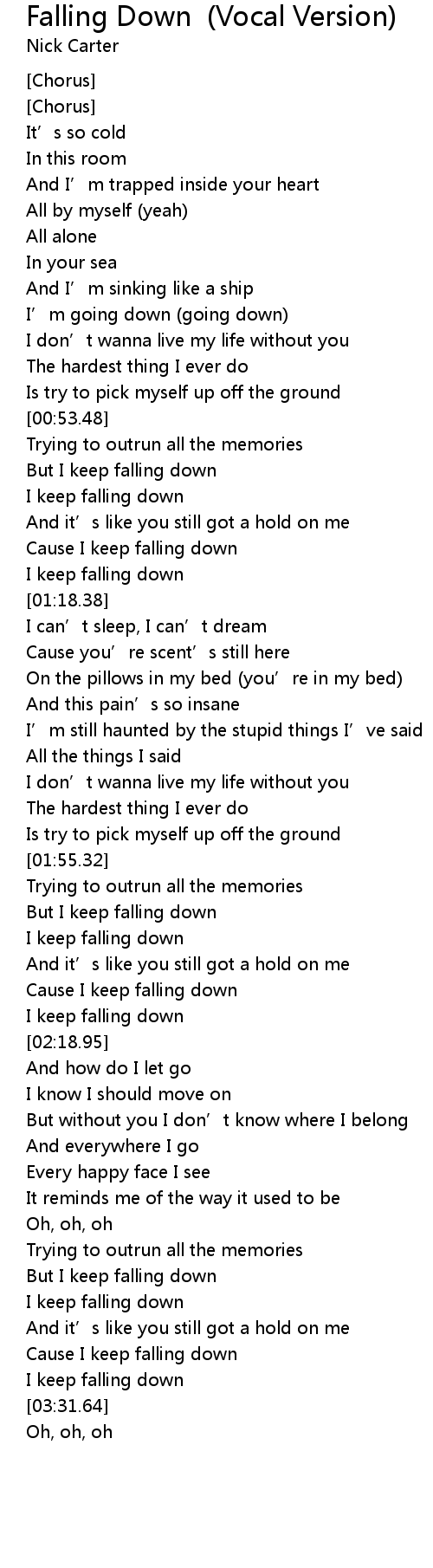 | [01:11.41] | Cause I keep falling down |