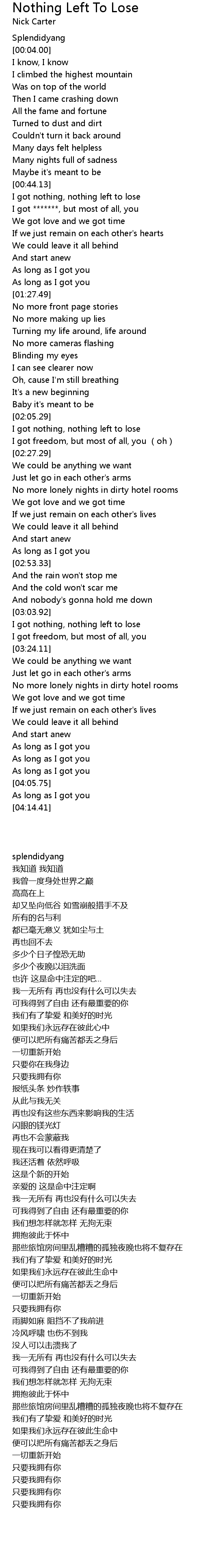 | [00:44.48] | I got nothing, nothing left to lose |