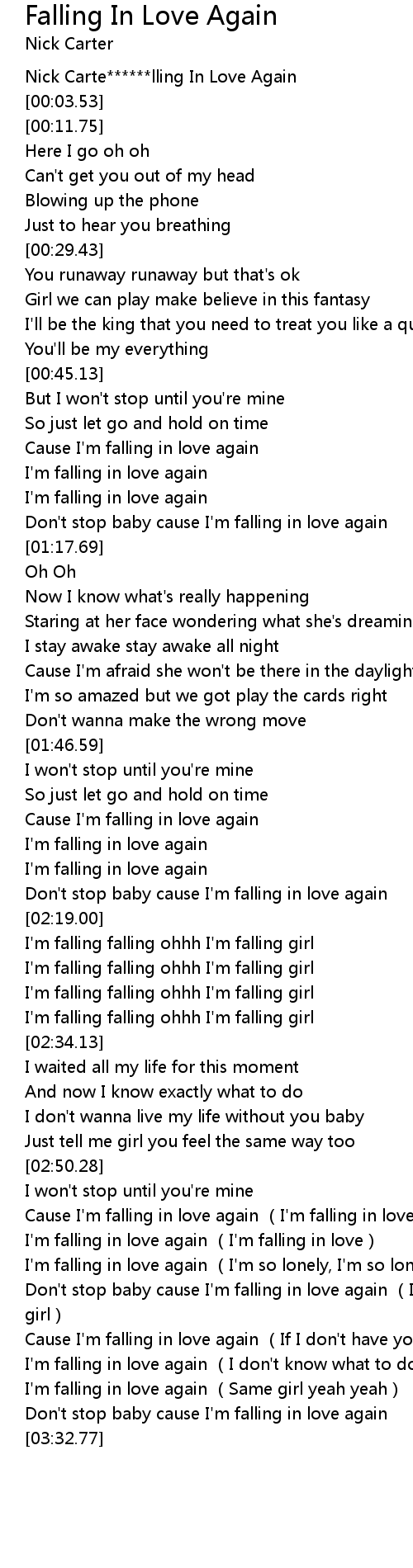 | [00:01.14] | Nick Carte******lling In Love Again |