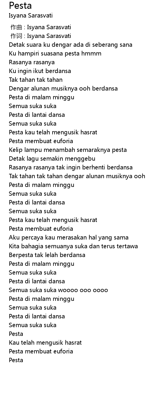 | 歌曲 | Pesta |