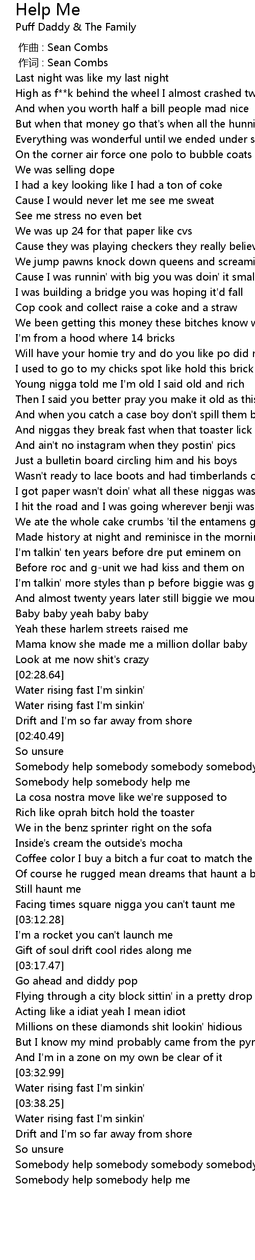 | [03:47.71] | Somebody help somebody somebody somebody |