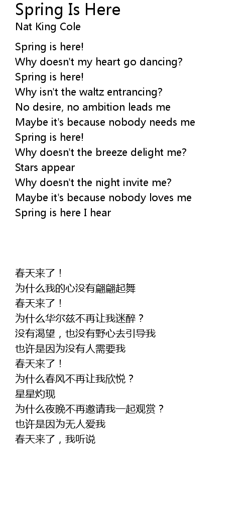 | 歌曲 | Spring Is Here |