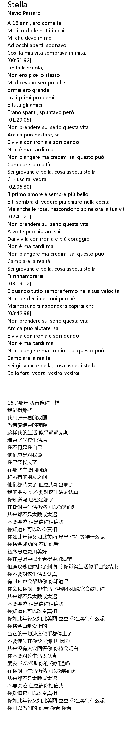 | [03:10.99] | Sei giovane e bella, cosa aspetti stella |