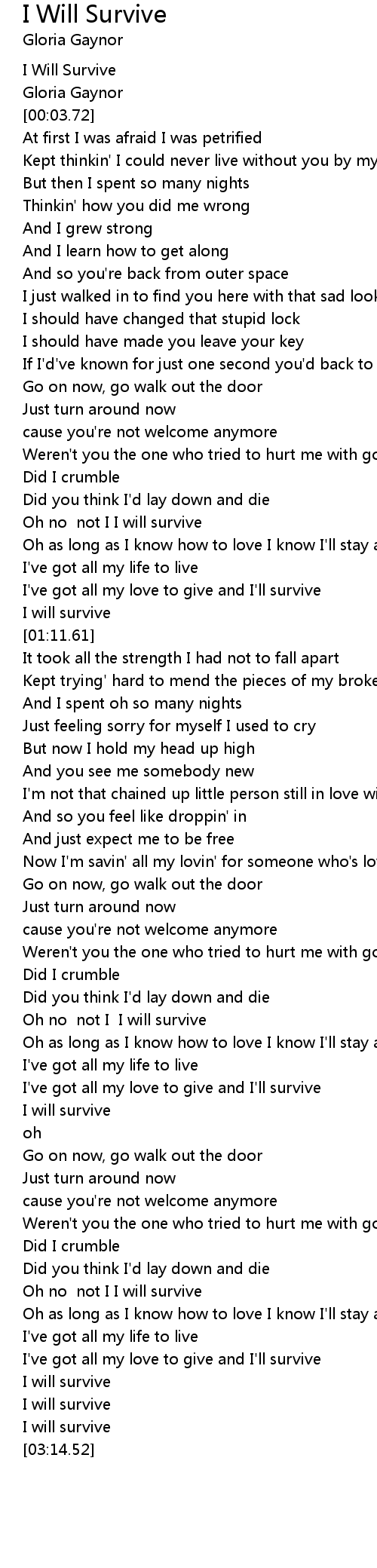 [02:55.35] Oh no not I I will survive