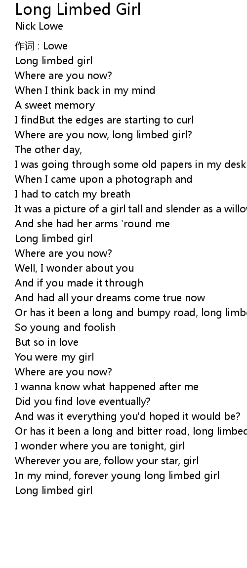 | Where are you now, long limbed girl? | |