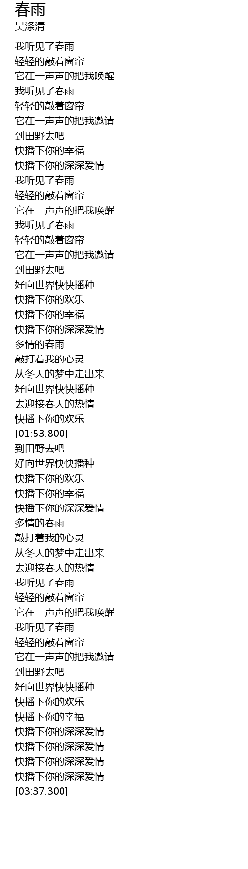 | [02:56.410] | wǒ tīng jiàn le chūn yǔ |