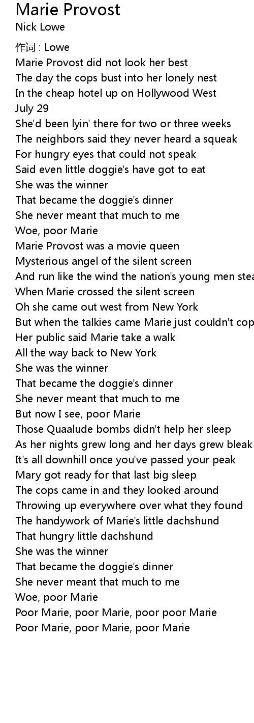| Poor Marie, poor Marie, poor poor Marie | |