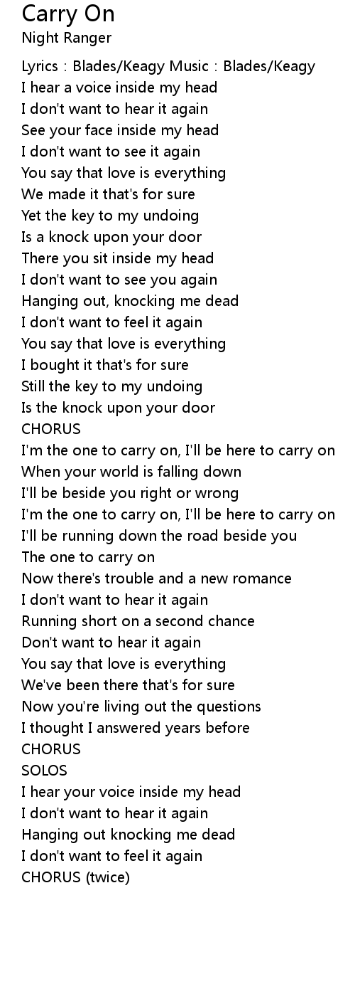 | I'm the one to carry on, I'll be here to carry on | |