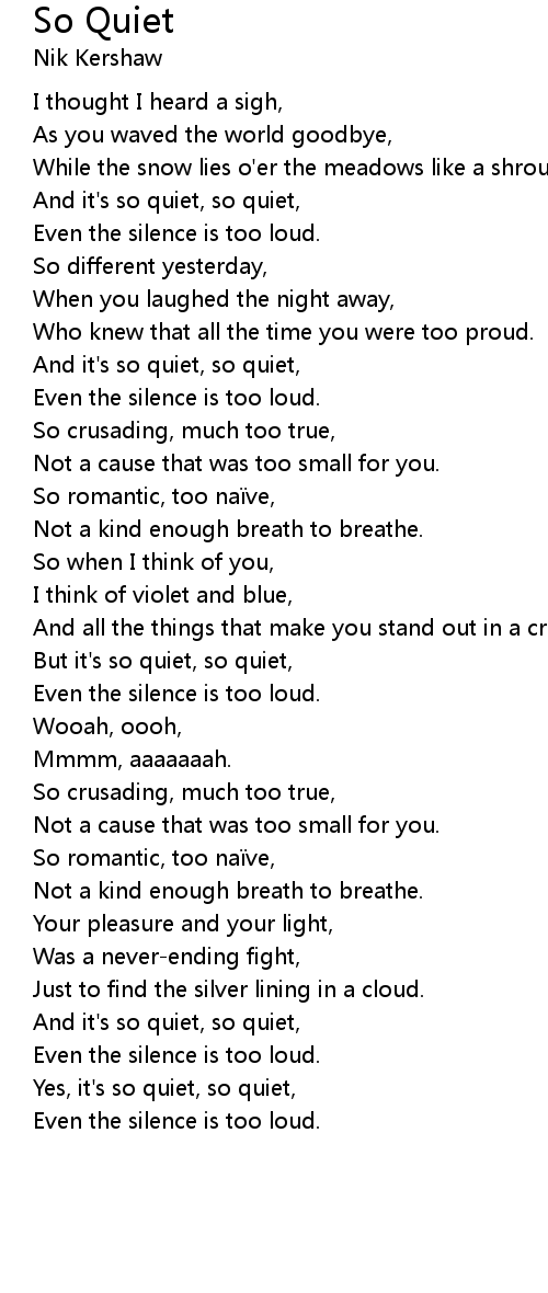| And it' s so quiet, so quiet, | |