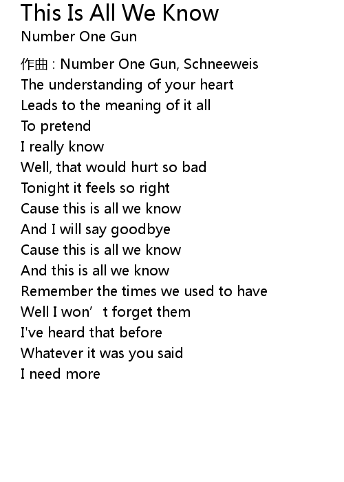 | 歌曲 | This Is All We Know |