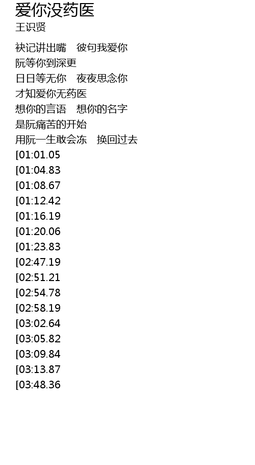 | [00:41.93] | 才知爱你无药医 |