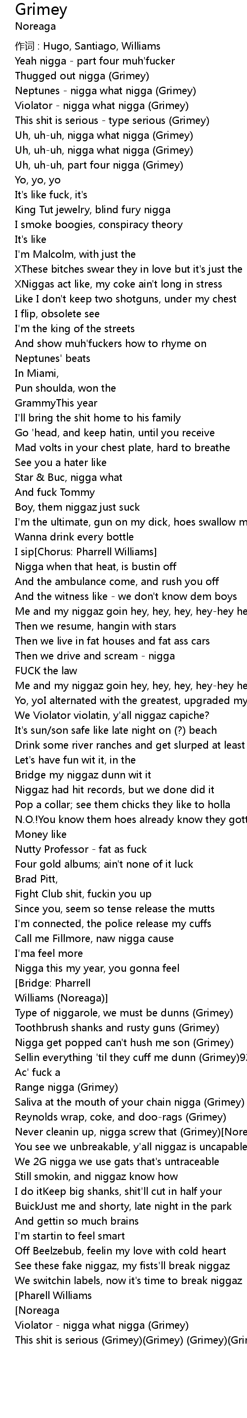 | Neptunes nigga what nigga Grimey | |