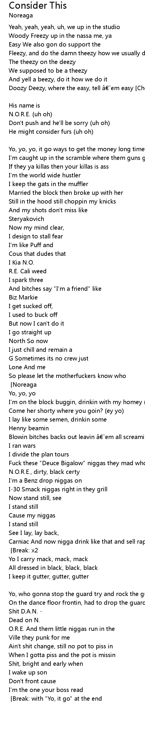 | I be It go [Chorus w/ talking in background] [Noreaga] | |