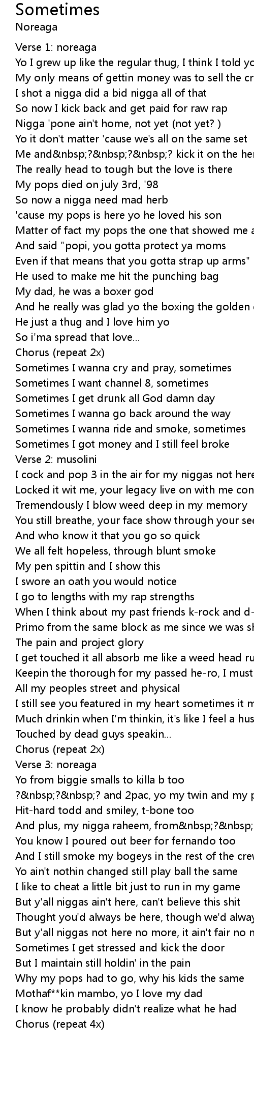 Sometimes I wanna cry and pray, sometimes |