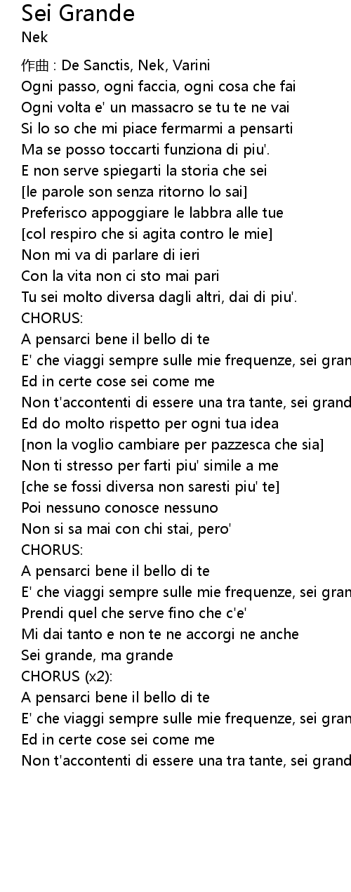 | zuò qǔ : De Sanctis, Nek, Varini | |
