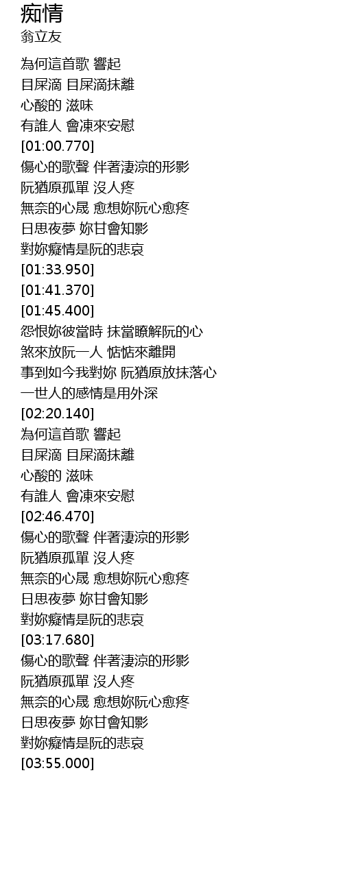 | [03:43.350] | 對妳癡情是阮的悲哀 |