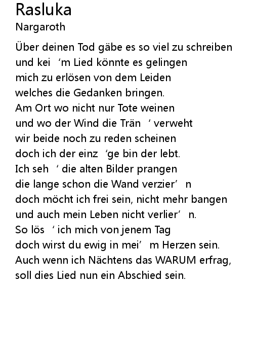 | Ü ber deinen Tod g be es so viel zu schreiben | |