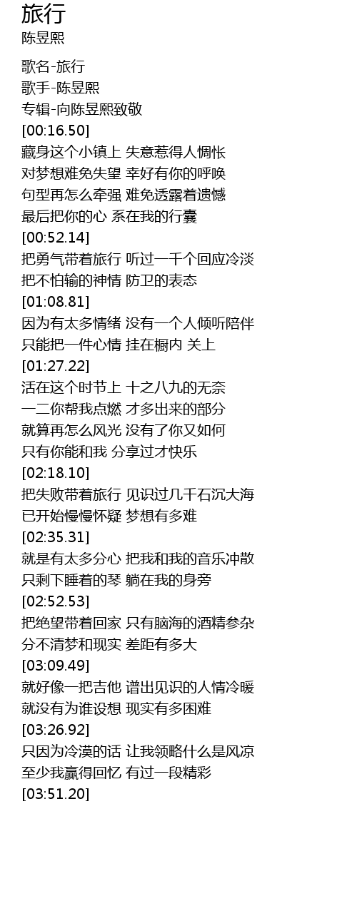 | [00:00.72] | 歌名-旅行 |