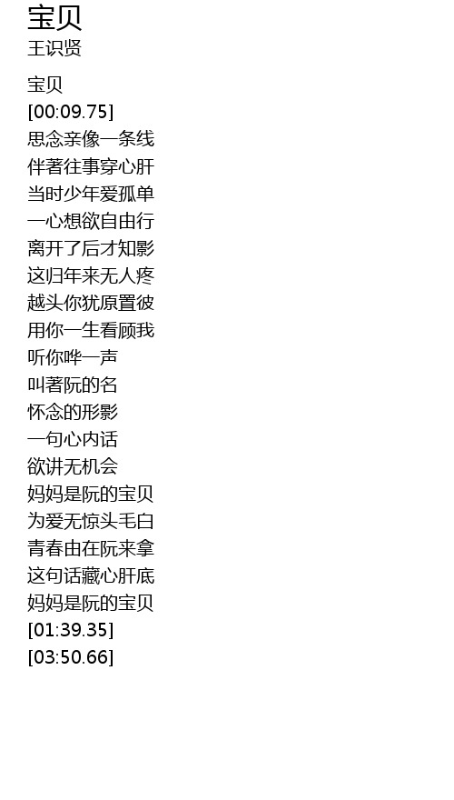 | [01:34.50] | 妈妈是阮的宝贝 |