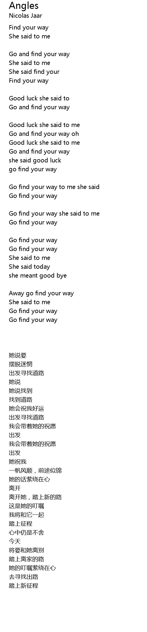 | Go find your way she said to me | |