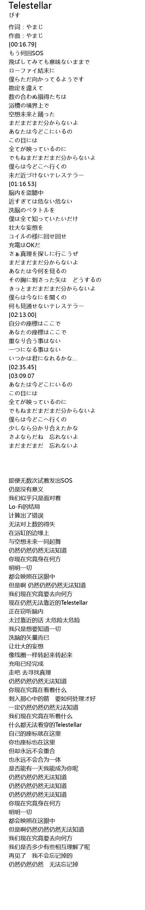 | [02:09.95] | 什么都无法看穿的Telestellar |