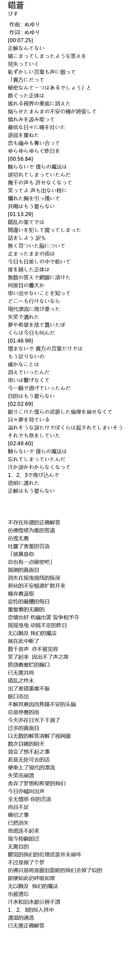 | [01:29.72] | 無数の答えで網膜に溶けた |
