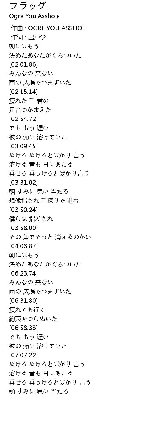 | [00:00.00] | 作曲 : OGRE YOU ASSHOLE |