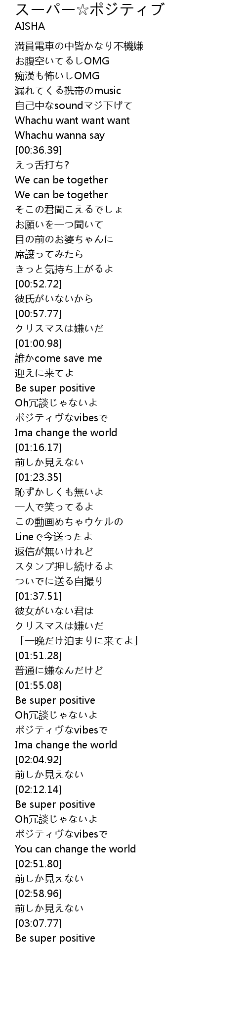 | [00:23.40] | 満員電車の中皆かなり不機嫌 |