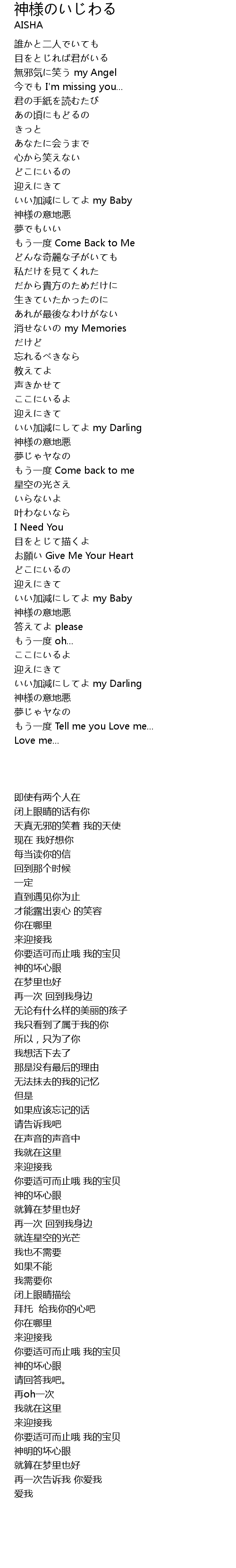 | [00:13.490] | 無邪気に笑う my Angel |