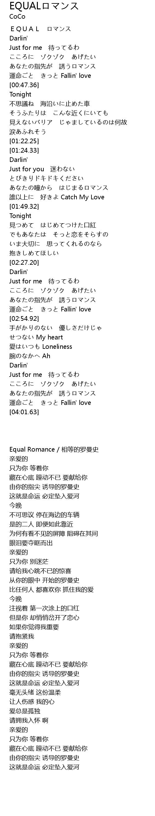 | [02:47.78] | 運命ごと きっと Fallin' love |