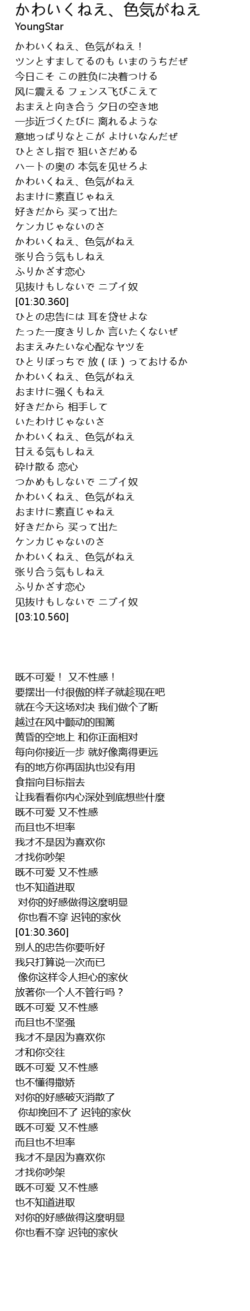 | [02:24.020] | かわいくねえ、色気がねえ |