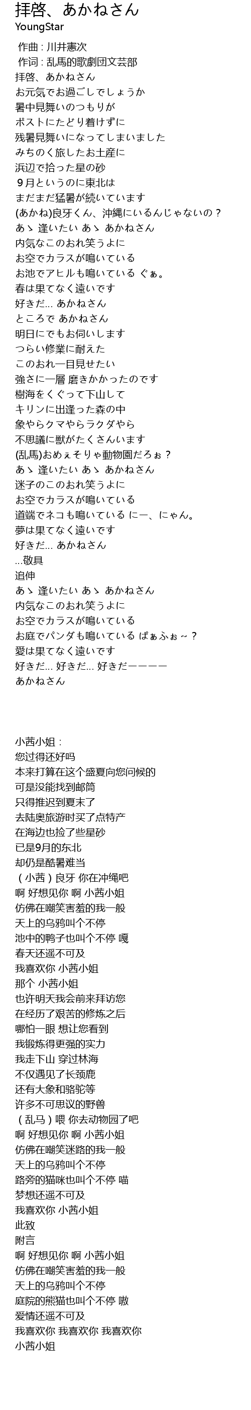 | [00:01.00] | 作词 : 乱馬的歌劇団文芸部 |