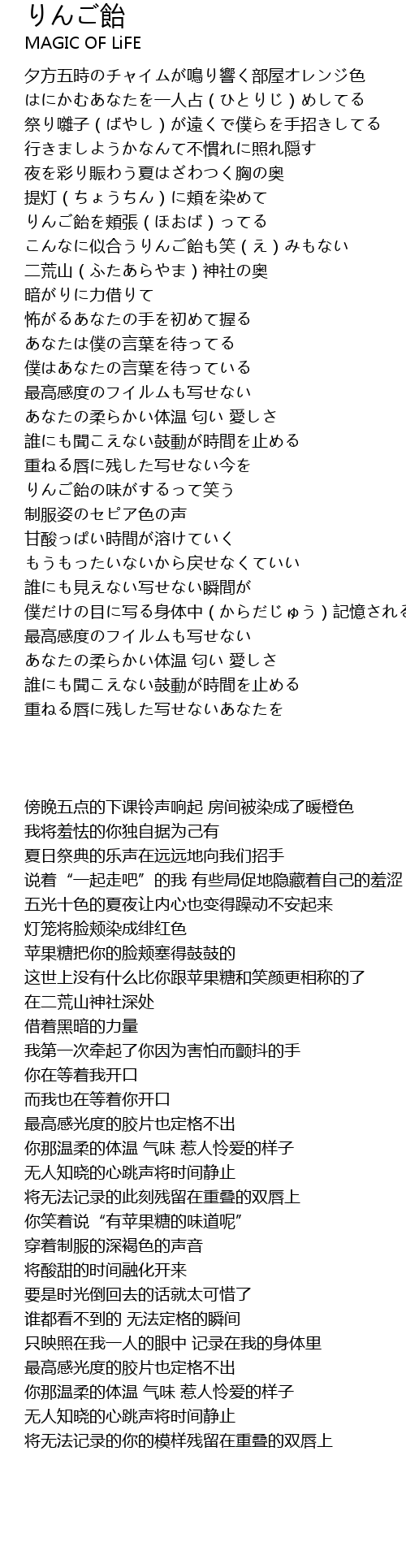 | [00:47.93] | りんご飴を頬張(ほおば)ってる |