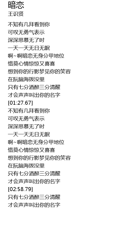 | [02:18.19] | 啊~啊暗恋无身分甲地位 |