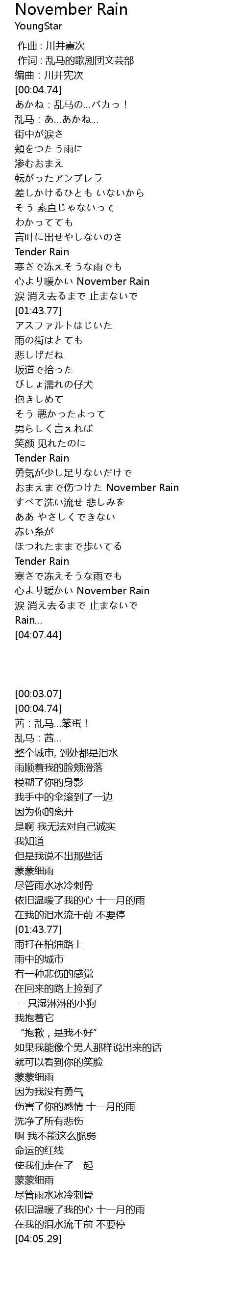 | [03:00.16] | shāng November Rain |