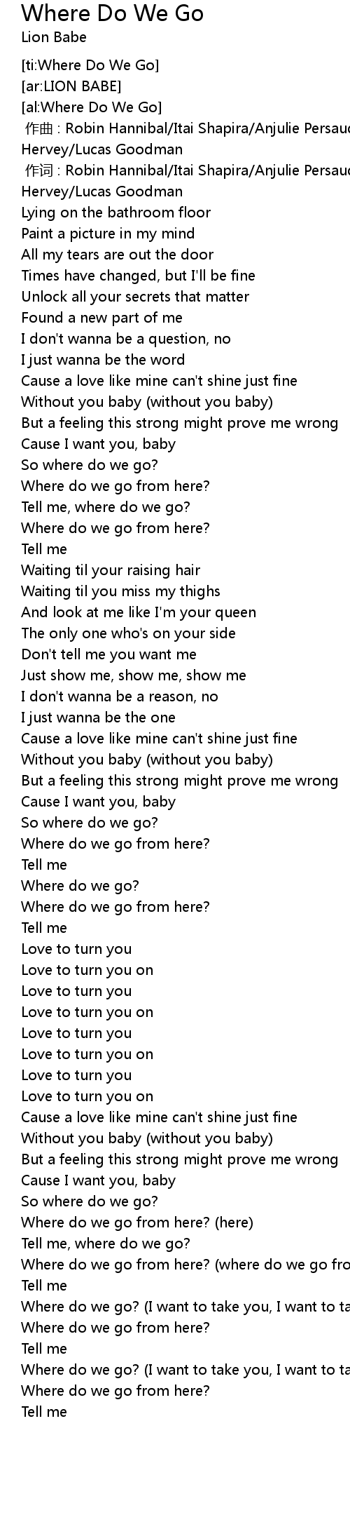 | [03:04.62] | Where do we go? (I want to take you, I want to take you home) |