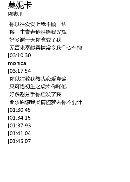 | [03:24.95][03:10.30][02:29.66][01:15.97][00:42.40] | thanks thanks thanks thanks monica |