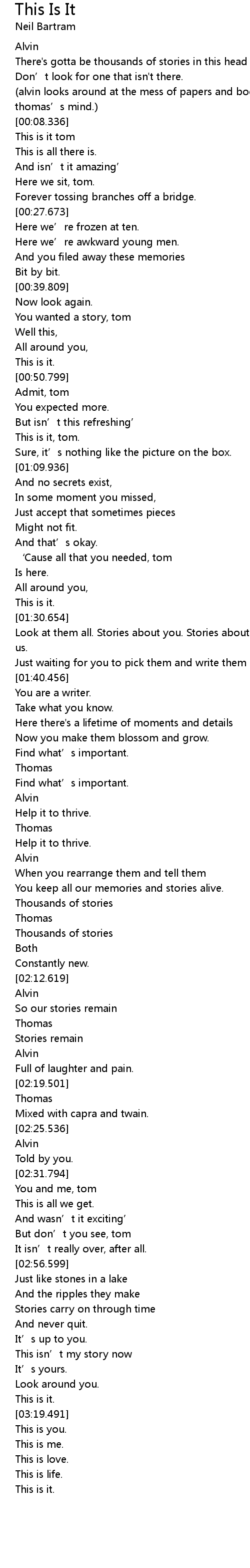 | [00:00.389] | There's gotta be thousands of stories in this head of yours, tom. |